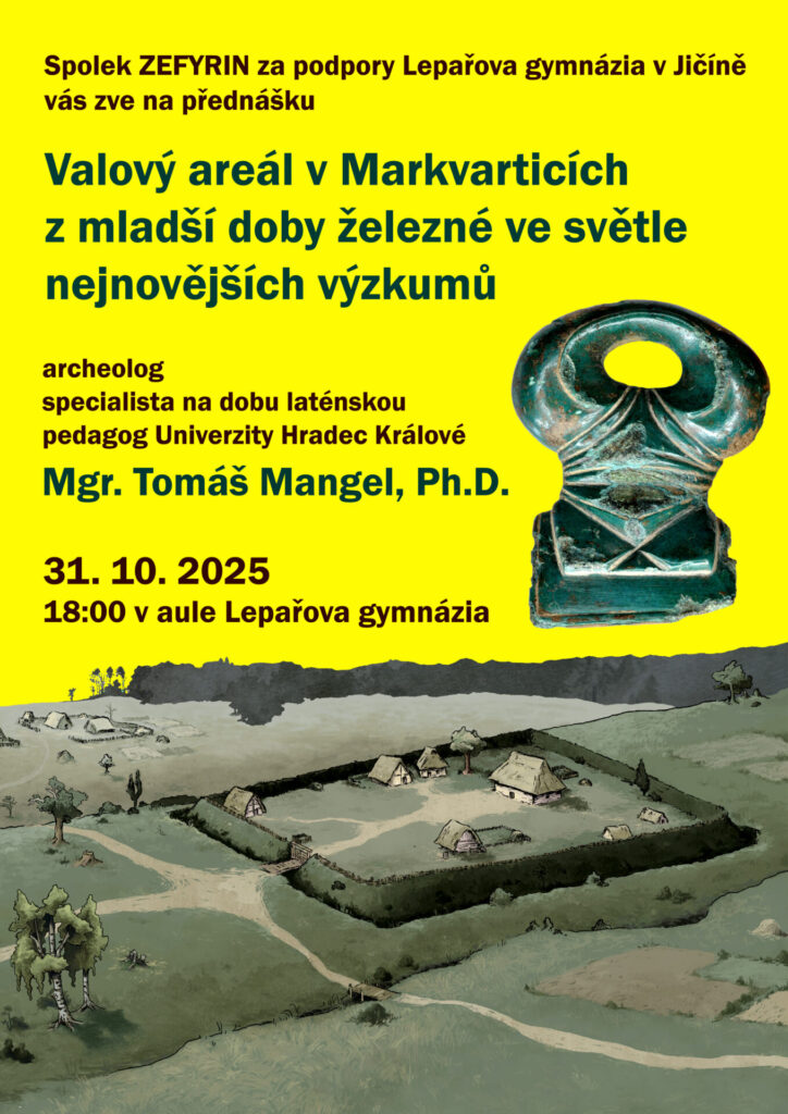 Déle jak půl století přijímaná interpretace těchto areálů jako keltských svatyní však začala být v posledních desetiletích podrobována kritice. Od roku 2018 probíhá nová vlna archeologických výzkumů i v Markvarticích na Jičínsku. Jaké jsou předběžné výsledky zdejších výzkumů a nakolik se skutečně jedná o areál spjatý s keltskými náboženskými obřady, nám v pátek 31. 10. 2025 od 18:00 hod. představí v aule Lepařova gymnázia archeolog, specialista na laténskou (keltskou) kulturu a pedagog Univerzity Hradec Králové Mgr. Tomáš Mangel, Ph.D., který je současně jeden z realizátorů archeologického výzkumu v Markvarticích.